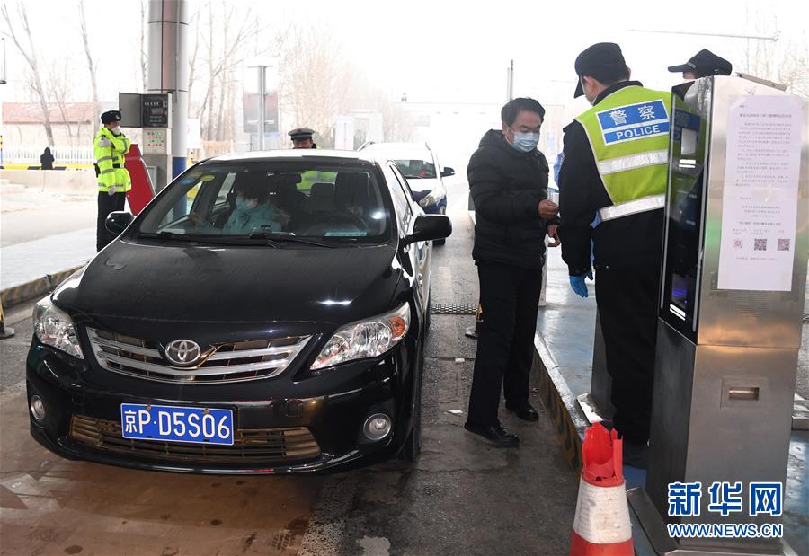 在平谷区马坊综合检查站,工作人员正在检查进京人员的证件(2月20日摄)。 新华社记者 任超 摄