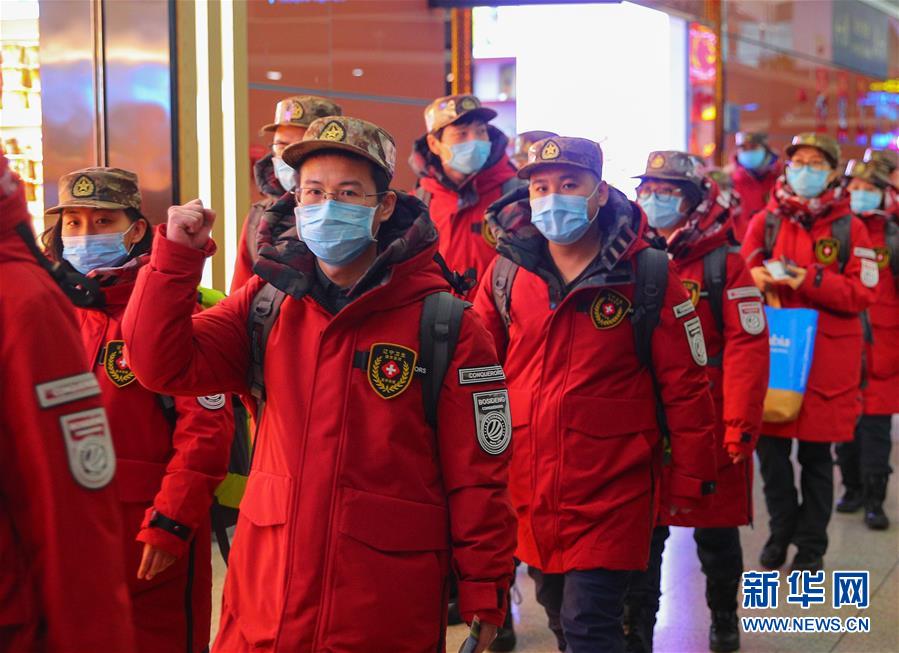 2月14日,辽宁省第二批对口支援湖北襄阳医疗队队员在沈阳桃仙国际机场,准备出发。新华社记者 龙雷 摄