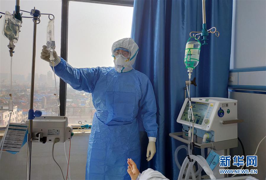 2月24日,中国医科大学附属盛京医院医生韩峰在襄阳市第一人民医院工作。新华社发(盛京医院供图)