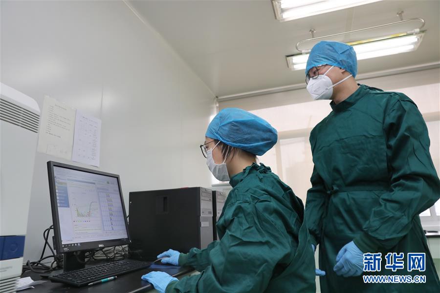 2月25日,季霄雷(右)和郭陈进行检测结果分析。新华社发(许丛军 摄)