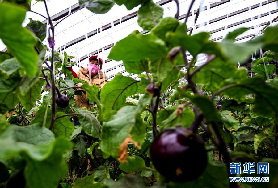 2月25日,河北武安市白沙村村民对蔬菜大棚内的茄子进行日常管理。 初春时节,气温回升,农民在田间地头忙于农业生产。 新华社记者 王晓 摄