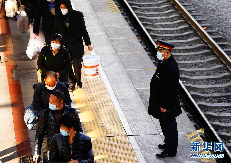 2月26日,旅客在北京西站下车。 当日,由北京铁路局北京客运段担当值乘任务的重庆北至北京西站的Z4次务工人员专列抵达北京西站。该趟列车共有旅客470人,其中167名务工人员到京后由北京建工集团统一管理,另有303名回京工作的旅客,自行返岗。 新华社记者 邢广利 摄
