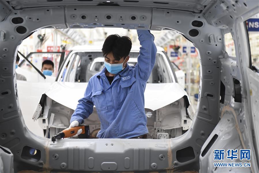 2月26日,在广西贵港市覃塘区的一家汽车生产企业,工人在车间内工作。 近期,广西贵港市覃塘区在做好新冠肺炎疫情防控工作的同时,积极推动重点项目和企业复工复产。截至目前,覃塘区内规模以上企业复工复产率已达98%。 新华社记者 曹祎铭 摄