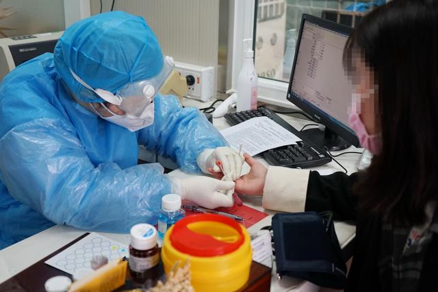 ↑2月25日,工作人员为新冠肺炎康复者胡女士进行献血前常规检测。新华社发