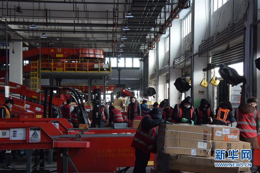 2月26日,顺丰速运(天津)有限公司分拨中心一片繁忙。 近日,天津有序推进快递行业复工复产,截至目前,天津市17家规模以上快递企业分拨(转运)中心已全部开工运营。 新华社记者 周润健 摄