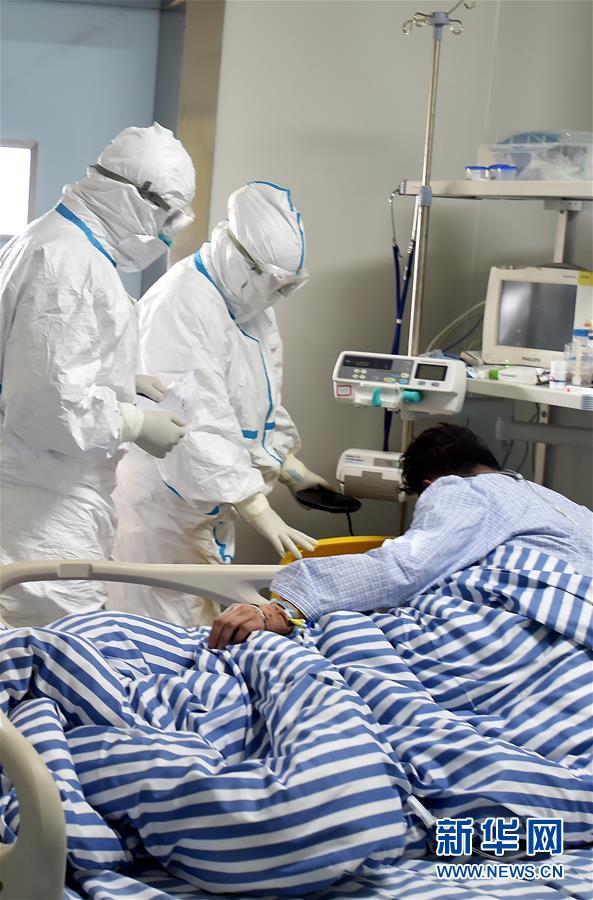 西藏自治区第三人民医院医生治疗新冠肺炎确诊患者(2月1日摄)。 新华社记者 觉果 摄