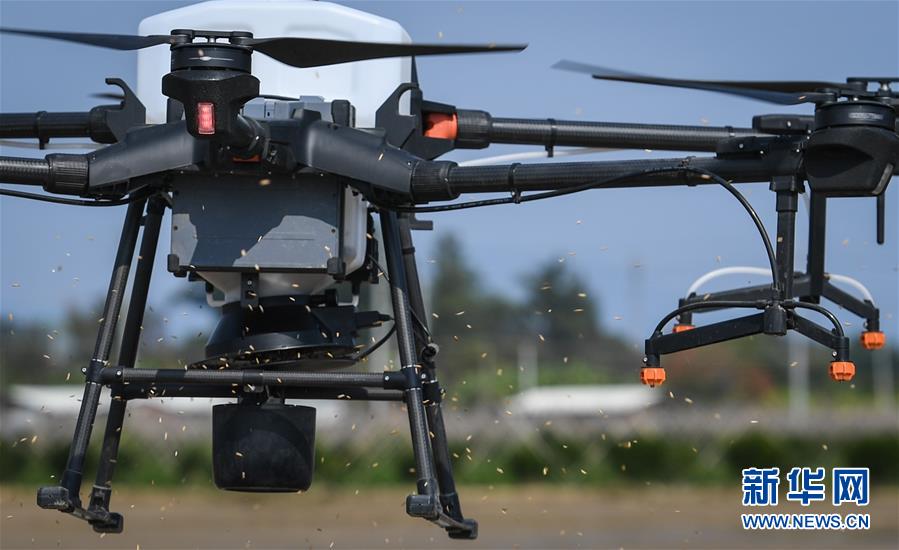 2月26日,在广东江门开平市水口镇,无人机进行水稻种子播种。 当日,大疆农业联合广东江门开平市永晖农机专业合作社联合社开展的合作示范田项目开始播种。据了解,大疆农业2020年计划扩大落地示范点,将联合科研院校、企业、代理商等,针对不同作物场景,进行试验,验证无人机工作效果。 新华社记者 毛思倩 摄