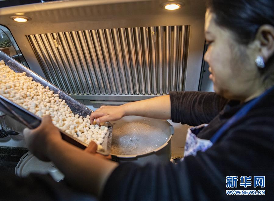 藏历新年期间,在拉萨市儿童福利院的家中,片多在制作年节食品“古突”(2月22日摄)。 新华社记者 孙非 摄