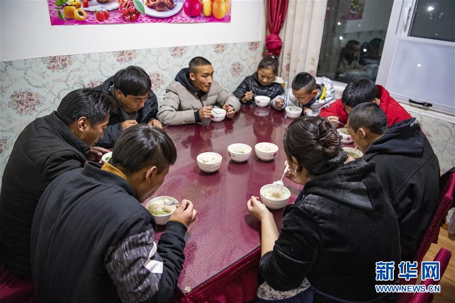藏历新年期间,在拉萨市儿童福利院的家中,片多一家在吃团圆饭(2月22日摄)。 新华社记者 孙非 摄
