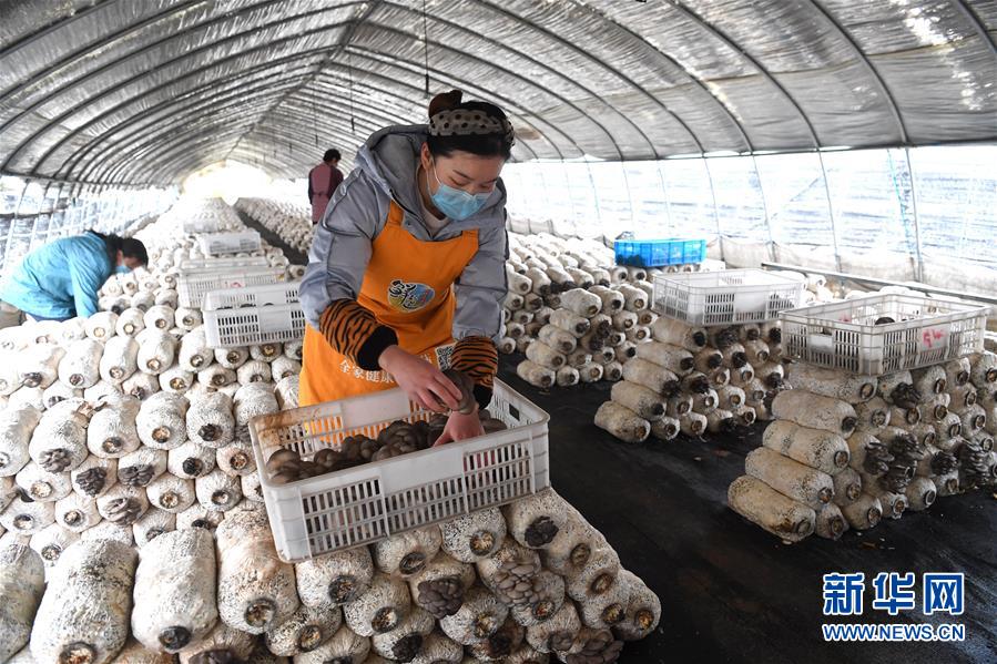 2月26日,肥西县铭传乡蘑菇种植基地农民在采摘蘑菇。 初春时节,安徽省肥西县铭传乡蘑菇种植基地的农民抓紧采摘蘑菇,供应市场。 新华社记者 刘军喜 摄