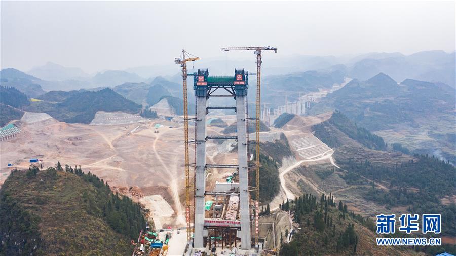 这是建设中的瓮开高速开州湖特大桥桥墩(2月26日摄,无人机照片)。新华社记者 陶亮 摄