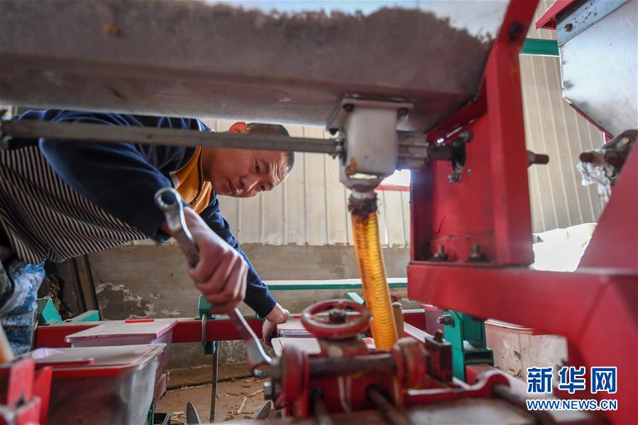 2月26日,在吉林省公主岭市刘房子街道山前村,万欣农民专业合作社农民李元学在检修农机。 随着天气回暖,吉林省各地陆续进入春耕准备阶段。在吉林省公主岭市,农民们忙着对即将投入春耕生产的农机进行检修。 新华社记者 张楠 摄