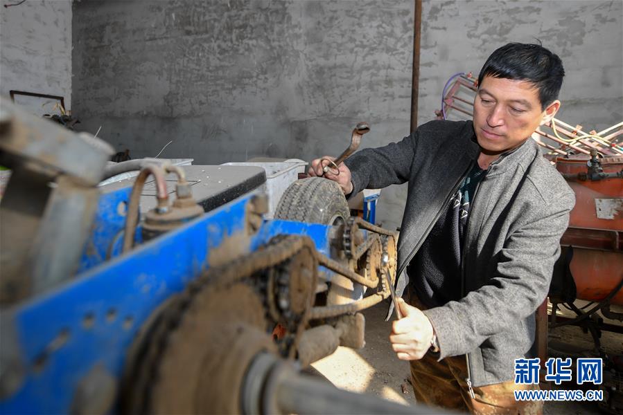 2月26日,在吉林省公主岭市环岭街道高家岗村,齐心种植农民专业合作社农民齐永生在检修农机。 随着天气回暖,吉林省各地陆续进入春耕准备阶段。在吉林省公主岭市,农民们忙着对即将投入春耕生产的农机进行检修。 新华社记者 张楠 摄