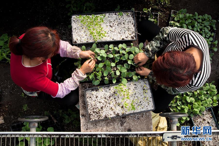 2月26日,两名农民在山东省高青县木李镇渌鑫蔬菜种植合作社嫁接种苗。 近日,各地农民抓紧农时,开展农事活动。 新华社发(张维堂 摄)