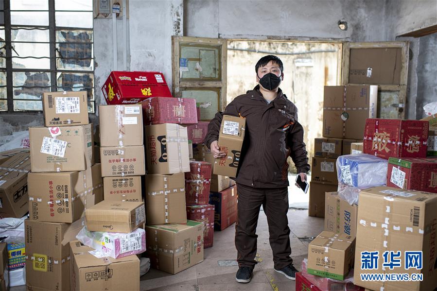 这是2月22日在配送站内拍摄的罗宗平的肖像。罗宗平是武汉一物流配送站的站长。每天派送的范围,包括武汉协和医院总部、武汉市红十字会医院等发热定点医院。从1月24日起,他就没回过家,一直住在站点附近。家人曾劝他回家休息,但罗宗平说,我们每天配送的包裹里有不少各地援助的医疗物资。有很多人需要我们的配送,我要做好这份本职工作。新华社记者 熊琦 摄