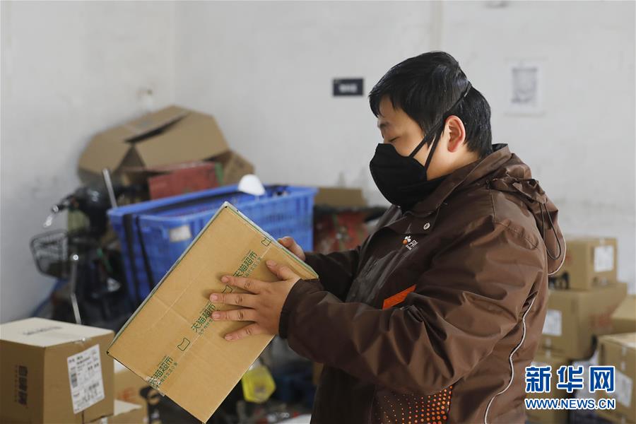 2月22日,罗宗平在配送站内将包裹归类。罗宗平是武汉一物流配送站的站长。每天派送的范围,包括武汉协和医院总部、武汉市红十字会医院等发热定点医院。从1月24日起,他就没回过家,一直住在站点附近。家人曾劝他回家休息,但罗宗平说,我们每天配送的包裹里有不少各地援助的医疗物资。有很多人需要我们的配送,我要做好这份本职工作。新华社记者 熊琦 摄