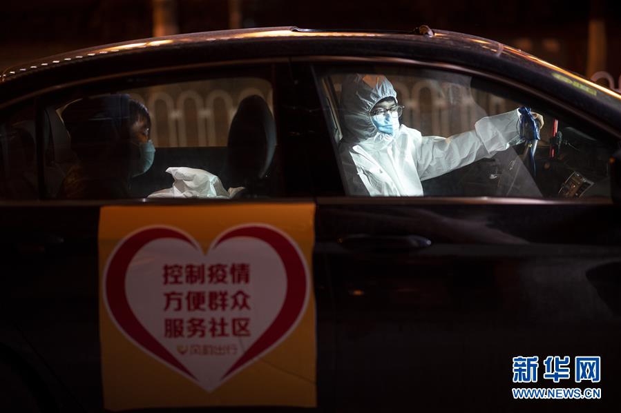 2月21日,王永朋在接到乘客后准备出发。这个春节王永朋没回老家甘肃安阳,他报名担任高德医护专车志愿者,开着年前刚买的新车,免费接送医护人员上下班。因为住在武汉新洲区,距离江汉、武昌等老城区有相当一段车程,他每天早上6点就起床出车,晚上十一二点才能回家休息,一天接送几十位医护人员上下班。每次到达目的地,医生和护士下车后做的第一件事,总是向他致谢,还有不少人硬要塞钱给他,穿着防护衣、戴着口罩和护目镜的王永朋,每次都微笑着退回了。新华社记者 熊琦 摄