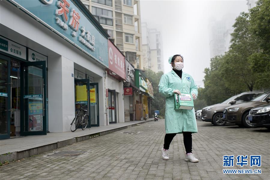 2月22日,王春波从药店出发,给周边小区的居民送药。王春波是武昌天济大药房锦绣江南店的一名店员,在武汉下达“所有小区全面实施封闭管理”的禁令之后,很多居民买药成了麻烦事,尤其是独居的老年人。她知道后,主动联系物业告知大家,如果有需要,她可以上门送药。现在,她和同事每天要派送100多单药品,大部分都是“三高人群”服用的药。很多顾客很感激王春波,“幸亏你们一直开业,东西也齐全,一分钱都没涨!”王春波说:“关键时期,大家都是在相互帮忙,这就是很平常、很普通的一件事。”新华社记者 熊琦 摄