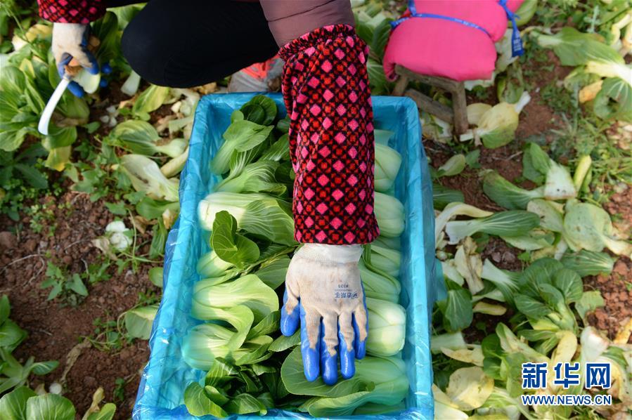 2月27日,肥东县古城镇江淮社区扶贫产业园蔬菜种植基地的农户在整理刚采摘的蔬菜。 初春时节,安徽省肥东县古城镇江淮社区扶贫产业园蔬菜种植基地的农户加紧采摘蔬菜,保障市场供应。 新华社发(黄博涵 摄)