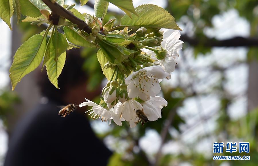 2月26日,山西曲沃县北董乡交里村果农许素丽家的大棚樱桃树利用放养的蜜蜂进行授粉。 山西省曲沃县广大农民在做好疫情防控的同时,抓住农时积极开展农业生产。 新华社记者 武敌 摄