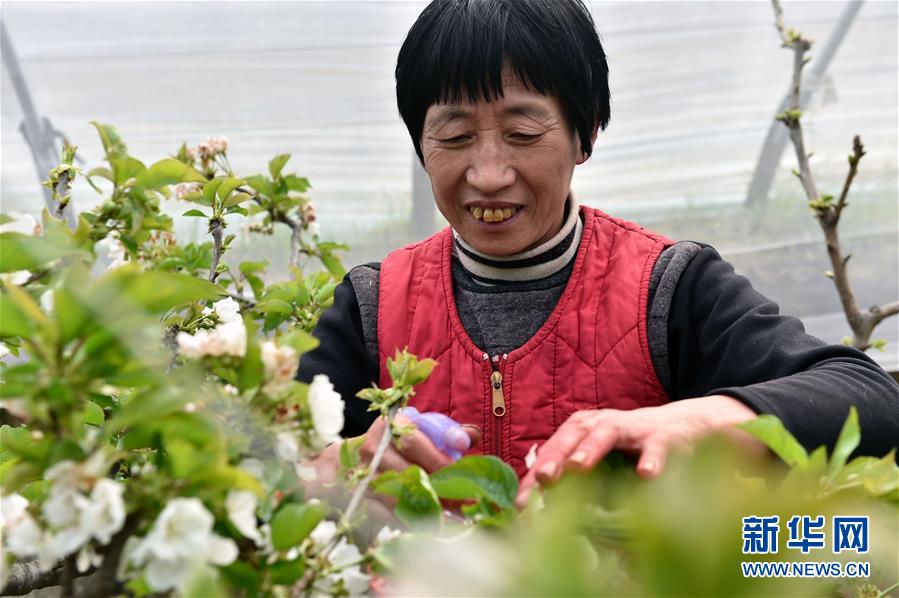2月26日,山西曲沃县北董乡交里村一名农民对樱桃树进行管护。 山西省曲沃县广大农民在做好疫情防控的同时,抓住农时积极开展农业生产。 新华社记者 武敌 摄