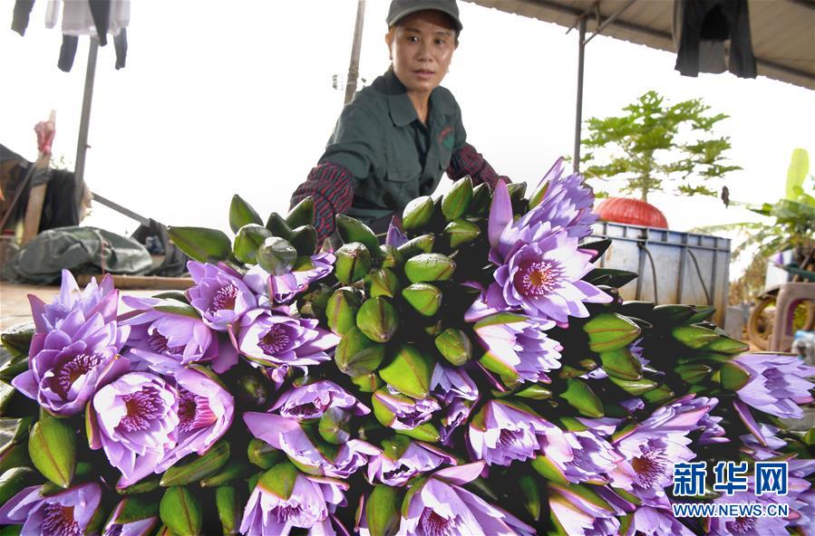 2月27日,海口市永群村花农在整理采摘的睡莲。 近日,在做好新冠肺炎疫情防控的同时,海南花农抓紧农时,积极恢复生产。近年来海南省花卉产业快速发展,已成为全国热带花卉和反季节花卉的主要生产基地。 新华社记者 赵颖全 摄