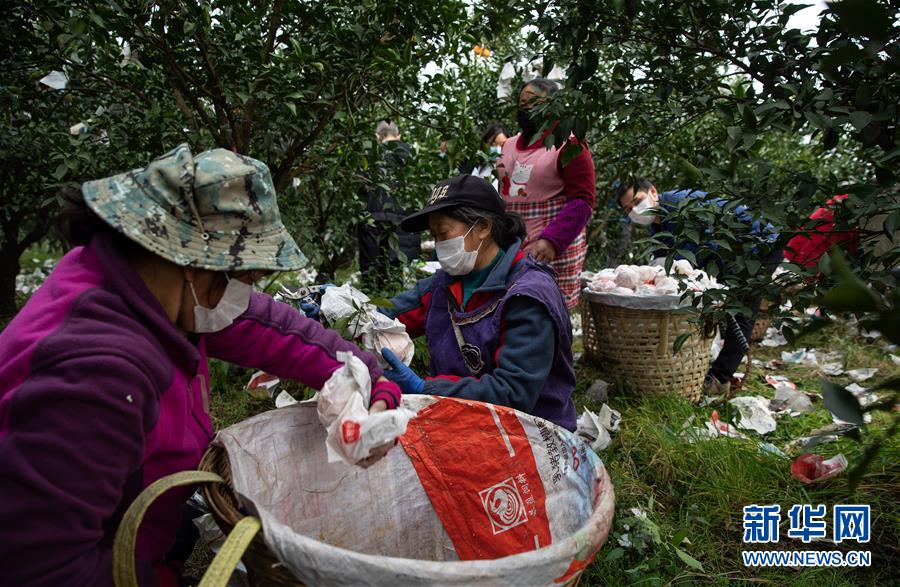 2月27日,丹棱县齐乐镇红石村村民在采摘“春见”。 近日,四川省眉山市丹棱县的“春见”“不知火”等桔橙品种陆续成熟上市。丹棱县桔橙现有种植面积达16万亩,当地一手抓疫情防控,一手抓采摘销售,让忙碌了一年的果农有好收成。 新华社记者 江宏景 摄