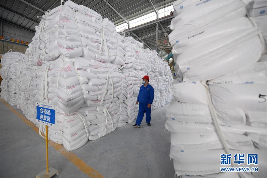 2月27日,在广西南宁市武鸣区甘圩镇一家新材料科技有限公司,一名工人从合格品存放区走过。 目前,广西南宁市武鸣区的企业在做好疫情防控的同时,逐渐有序复工,抢抓生产。 新华社记者 陆波岸 摄