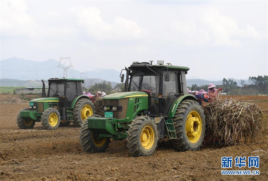 2月27日,在广西南宁市武鸣区陆斡镇龙口村,村民驾驶农机播种甘蔗。 目前,广西南宁市在做好农村疫情防控的同时,全力抢抓农时,做好春耕生产。 新华社记者 陆波岸 摄