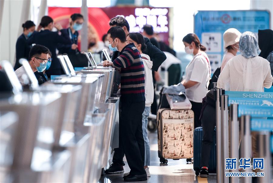 2月27日,旅客在深圳机场办理乘机手续。 随着航线航班的逐步恢复,深圳机场客运航班量逐步增加,进一步助力复工复产。 新华社记者毛思倩摄