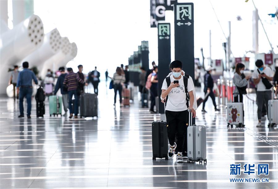 2月27日,旅客行走在深圳机场出发厅。 随着航线航班的逐步恢复,深圳机场客运航班量逐步增加,进一步助力复工复产。 新华社记者毛思倩摄