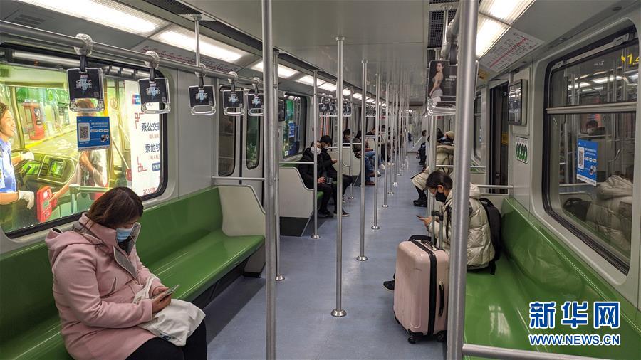 上海地铁车窗上张贴了防疫登记二维码(2月28日摄)。 新华社发(王翔摄)