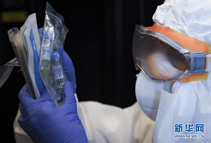 2月27日,在深圳龙岗的一家“健康驿站”,护士钟笑瑜核对咽拭子采集人员的身份信息。 新华社记者 毛思倩 摄