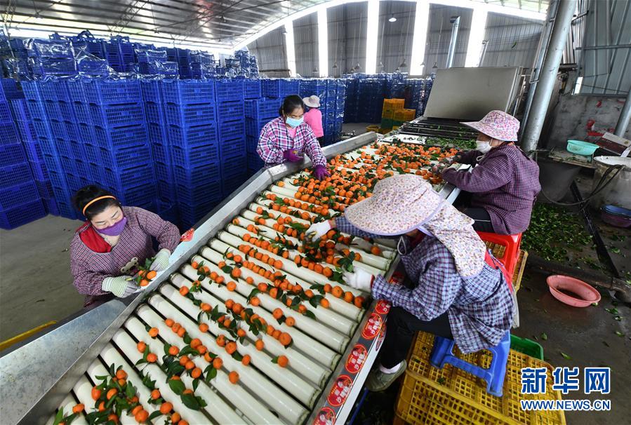 2月28日,工人在广西柳州市鹿寨县四排镇一家果场内选果。 新华社记者 黄孝邦 摄