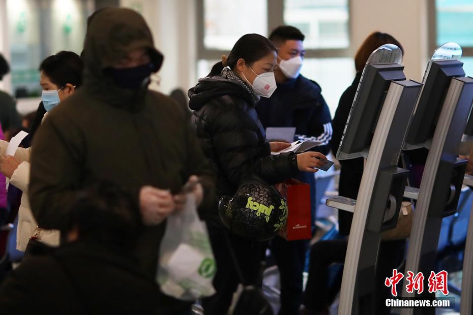 市民在门诊大厅内使用自助挂号机。 泱波 摄