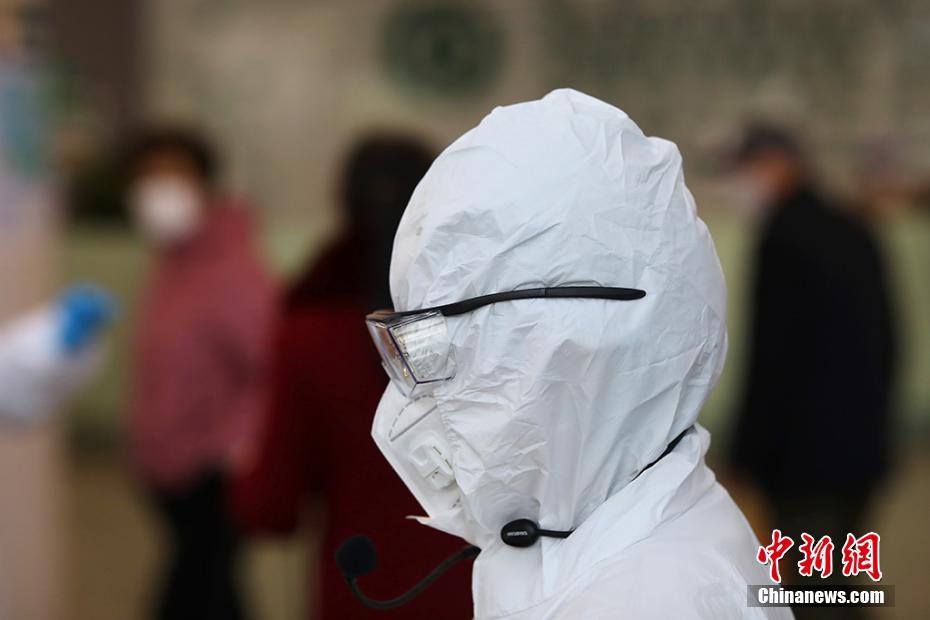 负责测温的医务人员紧盯着红外测温仪器。 泱波 摄