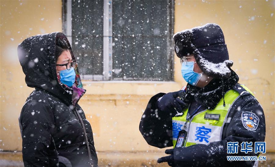 李可心(右)为一名市民讲解相关规定(3月1日摄)。 新华社记者王松摄