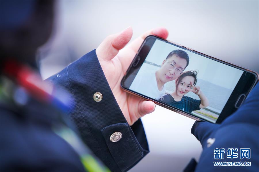 李可心的手机里存有自己与未婚妻去年外出旅游时的合影(3月1日摄)。 新华社记者王松摄
