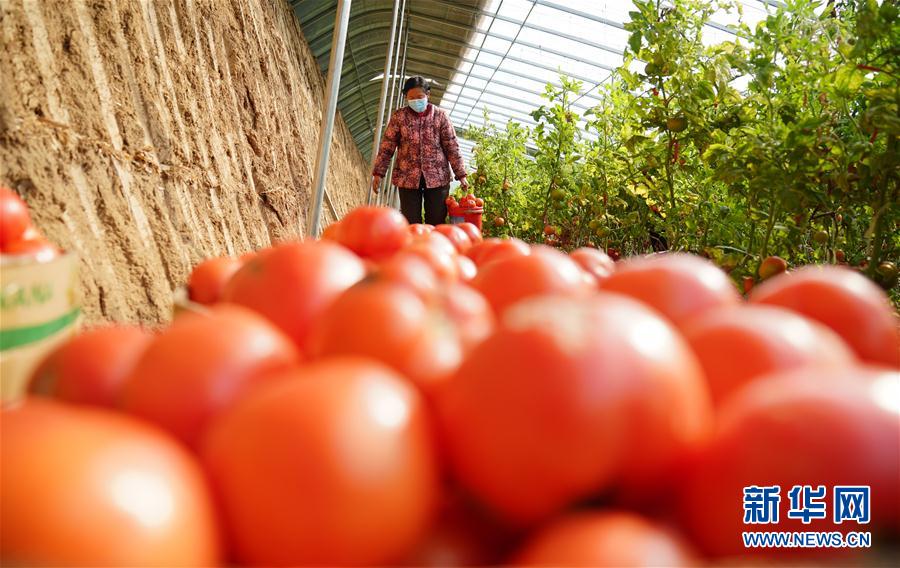 3月3日,河北邢台经济开发区东北流村农民在大棚内搬运收获的西红柿。 新华社记者 牟宇 摄