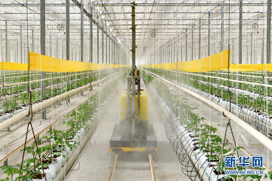 3月3日,自动喷药机在格子头村的玻璃温室大棚内为西红柿苗喷洒农药。 初春时节,山西省晋中市太谷区范村镇格子头村的农民们抢抓农时,开展西红柿苗的培育管理工作。山西农业大学孙胜教授团队为村民引进自动喷药机、病虫害物理防治系统、水肥一体化系统,有效提高了生产效率,帮助农民增收致富。 新华社记者 曹阳 摄