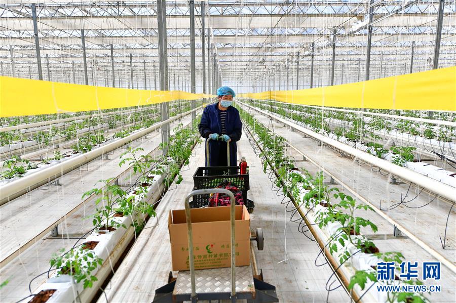 3月3日,格子头村村民在玻璃温室大棚内准备为西红柿苗整枝打杈。 初春时节,山西省晋中市太谷区范村镇格子头村的农民们抢抓农时,开展西红柿苗的培育管理工作。山西农业大学孙胜教授团队为村民引进自动喷药机、病虫害物理防治系统、水肥一体化系统,有效提高了生产效率,帮助农民增收致富。 新华社记者 曹阳 摄