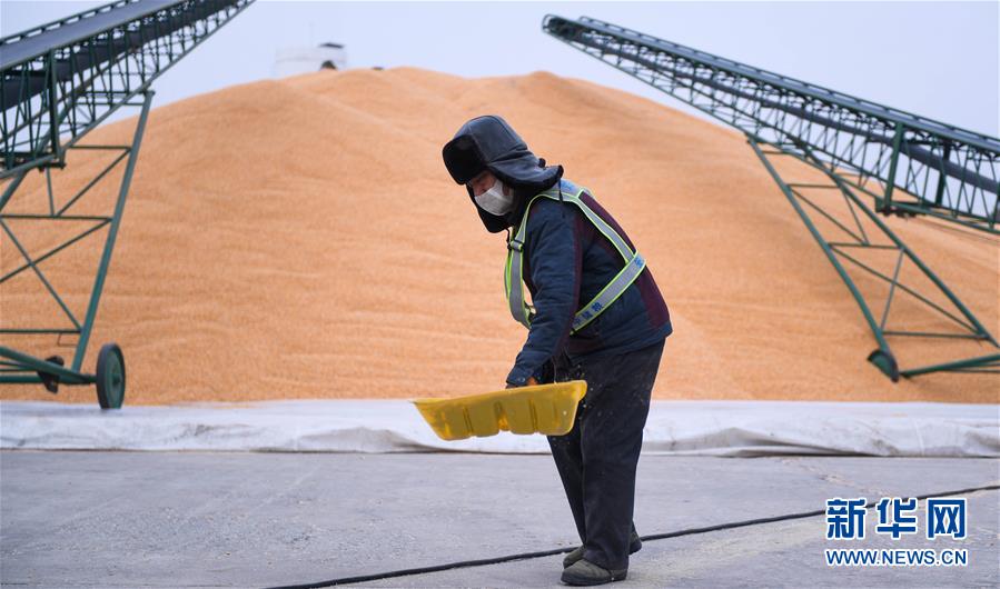 3月3日,工作人员在中央储备粮松原直属库有限公司的作业现场进行清扫工作。 2月12日起,中储粮吉林分公司开秤收购,截至3月3日,累计收购最低价稻谷和中央储备粮轮换玉米共32.3万吨,各库点收购工作顺利进行。 新华社发(颜麟蕴 摄)