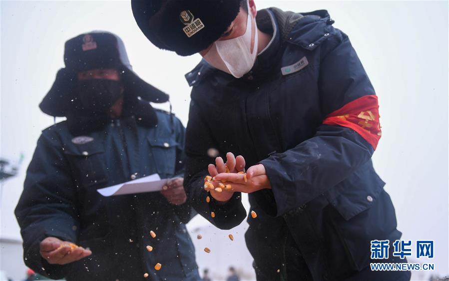 3月3日,工作人员在中央储备粮松原直属库有限公司内进行现场监卸。 2月12日起,中储粮吉林分公司开秤收购,截至3月3日,累计收购最低价稻谷和中央储备粮轮换玉米共32.3万吨,各库点收购工作顺利进行。 新华社发(颜麟蕴 摄)