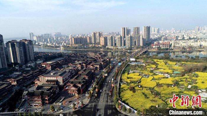 眉山城区高楼与农田盛开的油菜花。 刘忠俊 摄