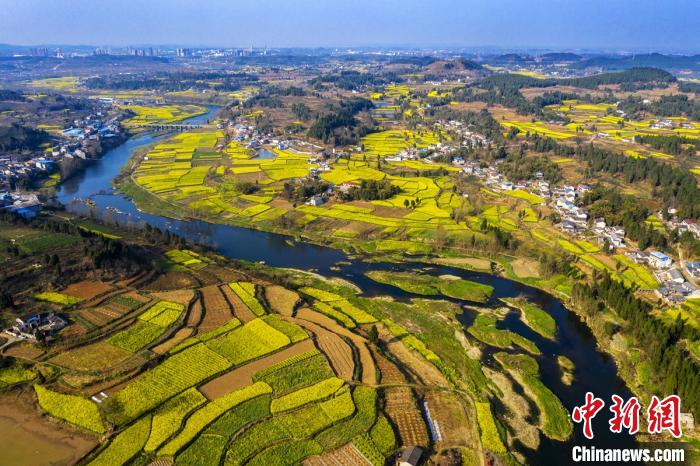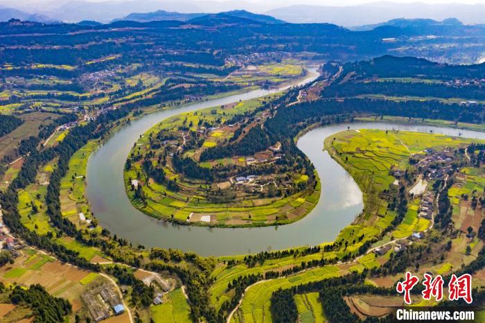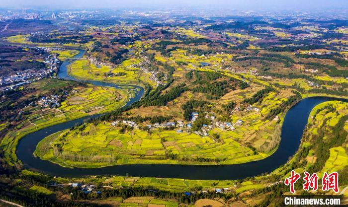 罗江县蟠龙镇凯江大回湾处的油菜花海。 杨建 摄