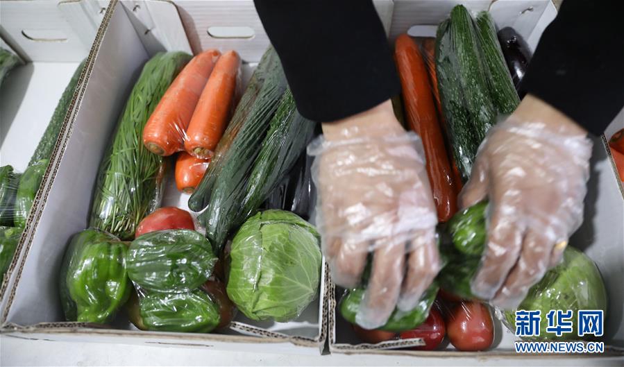 3月3日,海城市三星生态农业有限公司的工人在蔬菜打包车间内分装蔬菜。复工复产以来,企业建立网上蔬菜超市,每天接到订单后,由大棚内农户统一采摘,企业进行统一分装配送。 近日,辽宁海城多家农业公司积极带领农户在设施大棚内复产复工,并开启网络销售模式,设施大棚内一片繁忙景象。 新华社记者 姚剑锋 摄