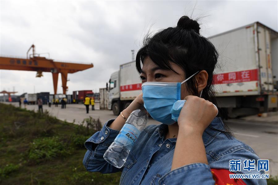3月3日,在广西南宁国际铁路港,黄莹莹在搬运广西驰援湖北物资间隙换下被弄脏的口罩。 潘晓琪和黄莹莹是中国铁路南宁局集团公司南宁车务段工作人员,家乡在湖北省十堰市,两人是表姐妹关系。新冠肺炎疫情发生以来,广西每次驰援湖北的果蔬专列装货时,她们都以南宁车务段“青年突击队”队员的身份到广西南宁国际铁路港义务搬运物资装车,她们用自己的实际行动在异乡支持家乡“战疫”。 新华社记者 陆波岸 摄