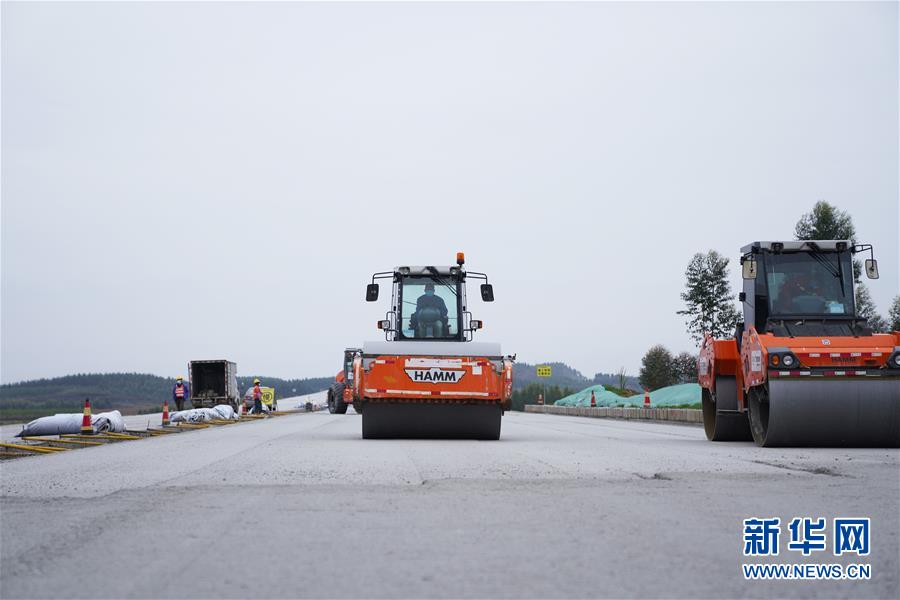 3月4日,工人在融河高速公路罗城段施工现场作业。 近日,广西融水苗族自治县至河池市高速公路(融河高速公路)相关建设单位在做好疫情防控的同时,抓紧复产复工,目前工程复工率已超过80%。 新华社记者 杨驰 摄