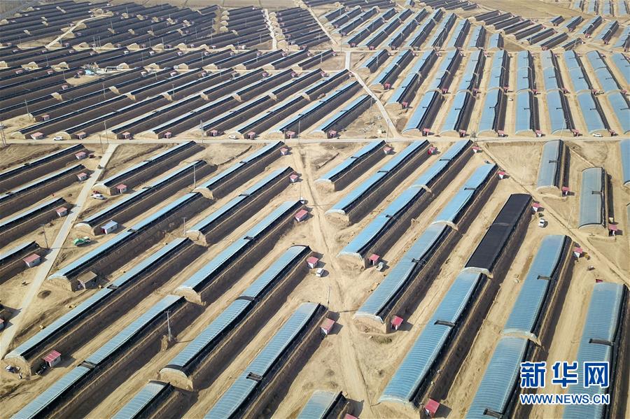 这是3月4日在靖远县北湾镇拍摄的富坪村日光温室基地(无人机照片)。 新华社记者 范培珅 摄