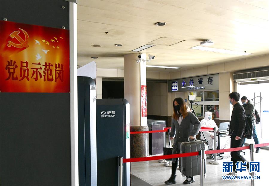 3月5日,旅客测量体温后进入济南长途汽车总站。 当日,在充分做好疫情防控工作的前提下,山东省恢复开通并逐步增加始发地和目的地均在省内低风险县(市、区)且不途经中风险县(市、区)的班线客运、农村客运,恢复相关汽车客运站运营。对目前为中风险地区的市际班线及省际班线视疫情情况逐步有序恢复。 新华社记者朱峥摄